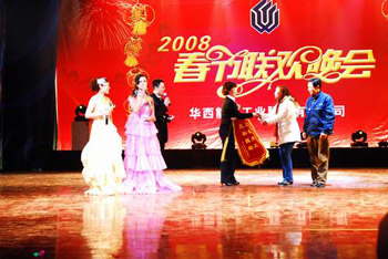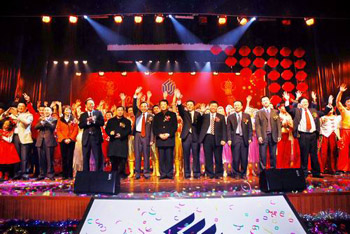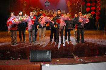 晚会在一片欢歌笑语中结束,公司领导和嘉宾们走上舞台,和演员们握手致谢,并再次祝福全场员工春节快乐