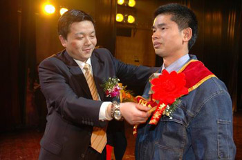 公司总经理杨军向2007年度“总经理特别荣誉奖”获得者陈生恒授奖