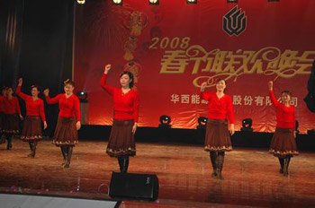 生产部员工表演舞蹈《红呀红,绿呀绿》