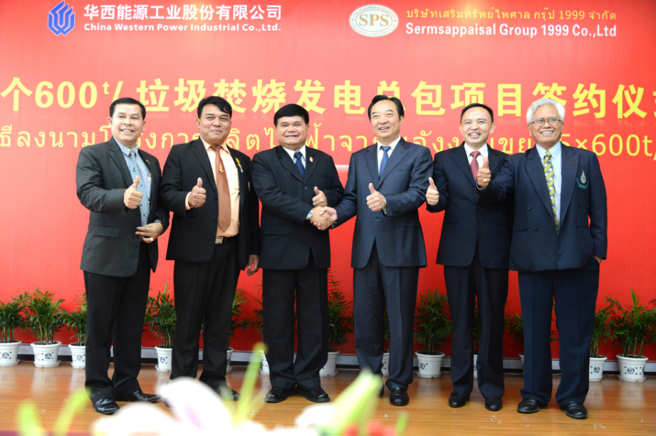 华西能源黎仁超董事长表示这次的合作项目将分别在泰国孔敬府(省)、四色菊府(省)、乌隆他尼府(省)、黎府(省)建设投产,日处理达600吨,9.5MW的城市生活垃圾用于发电,既是SPS1999对华西能源技术、装备,服务认同的结果,也是华西能源在泰国清洁能源环保电力奋力拓展的结晶。对于提升华西能源品牌,展示中国垃圾发电的先进技术和水平,形成以以泰国为中心,辐射马来西亚、印尼、缅甸等东南亚国家更为广泛的市场,具有深远的战略意义。华西能源将与SPS1999公司真诚合作,努力把项目打造成双方合作的典范和泰国一张靓丽的环保名片,为泰国解决电力不足,提高电力自给能力,解决城市生活垃圾困扰,推进“可再生能源战略”贡献中国企业智慧。