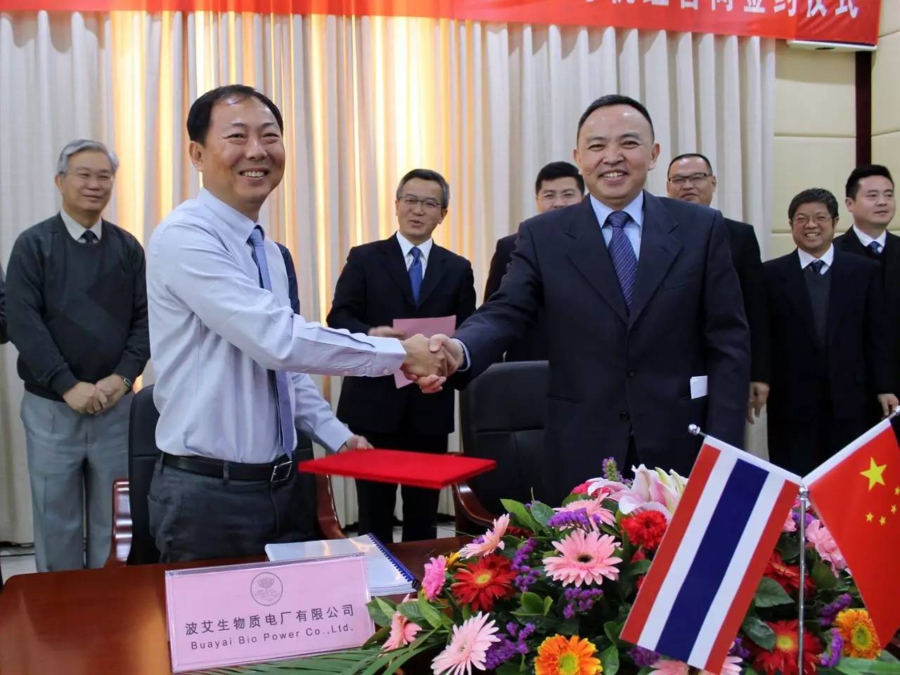 2月15日上午,华西能源与泰国波艾生物质有限公司(以下简称BYP公司)就泰国生物质2号机组项目合作在公司龙泉基地隆重举行合同签约仪式。公司董事长黎仁超、副总裁杨春乐、副总裁杨向东等领导出席签约仪式。
