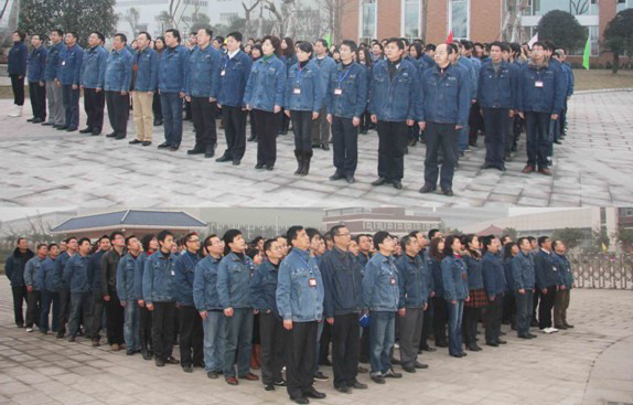 拜年活动结束后,在办公楼升旗台前举行了庄重的升国旗仪式,公司办公楼内各部门近500多名员工共同参加了升旗仪式。