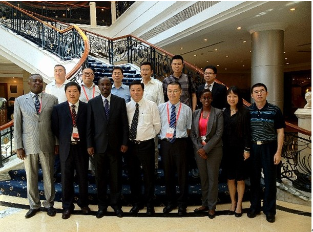A group photo of representatives.President Yang Jun stands next to Dr. Richard Sezibera (black suit) in the first row.